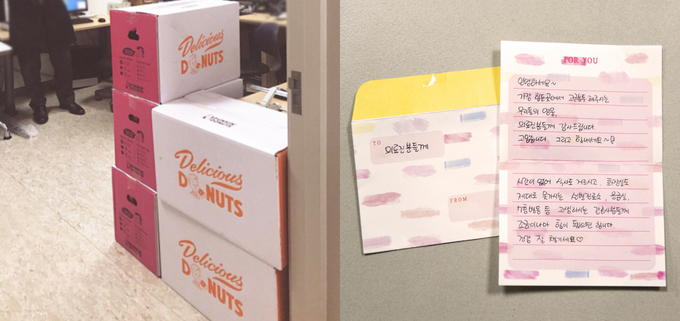 편지에는 “가장 힘든 곳에서 고군분투 해주시는 우리들의 영웅, 의료진분들께 감사드립니다.고생하는 의료진분들께 조금이나마 힘이 됐으면 합니다. 건강 잘 챙기세요”라는 응원의 메시지가 적혀 있었다.