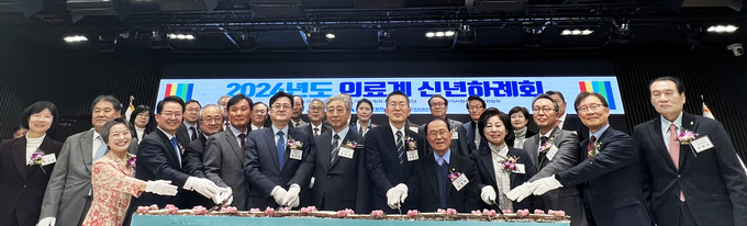 2024년 의료계 신년하례회가 지난 4일 오전 대한의사협회 회관 지하1층 대강당에서 박민수복지부차관을 비롯 내빈들이 참서한 가운데(주요 참석자 명단 아래 표 참조) 대한의사협회와 대한병원협회 공동주최로 진행돴다.