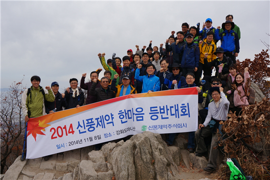 신풍제약은 임직원 간 단결된 조직문화를 만들고자 매년 개최하는 사내등반대회로 2014년 목표달성의 각오와 임직원간의 단결과 화합을 확인하는 계기로 되었다.