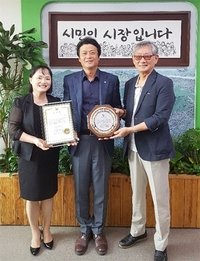 경기도 부천시 김만수 시장이 지난 5월 29일(월) 가족해체예방 활동을 펼치고 있는 사단법인 대한민국가족지킴이(이사장 오서진)의 특별기구 자문위원으로 위촉됐다.이날 시청사를 방문한 대한민국가족지킴이 오서진 이사장과 특별기구 집행부 총재인 배우 전무송 씨는 김만수 시장에게 자문위원 추대패를 전달했다.