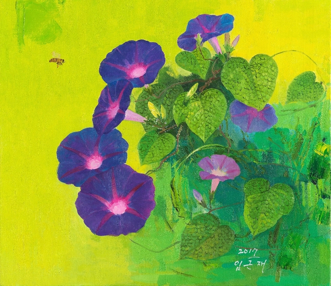 30여년 동안 남도의 정서를 담은 풍경과 꽃을 주로 그려온 임근재 작가는 “고향집에서 작업실로 가는 중 이슬을 머금은 나팔꽃에 매료돼 작품에 담게 됐다”고 밝혔다.