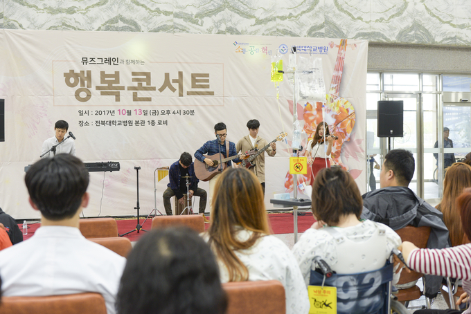 전북대학교병원(병원장 강명재)이 가을맞이 환우를 위한 작은 음악회 ‘뮤즈그레인과 함께하는 행복콘서트’를 개최했다.