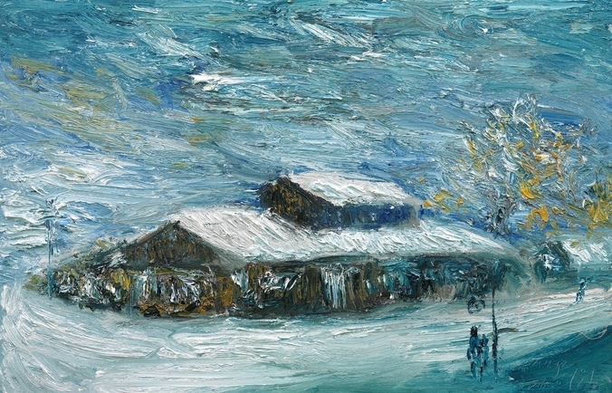 특히 ‘창밖 퇴락한 겨울마을’(96X54cm)은 눈 내린 겨울 밤 집집마다 눈 지붕을 이은 채 불빛이 켜져 있는 풍경을 담은 것으로, 마치 어릴 적 시골마을에 대한 아련한 기억을 떠올리게 한다.