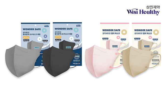 삼진제약 원더세이프 황사방역 마스크는 국산 프리미엄 MB필터를 적용해 0.4㎛ 크기의 미세입자를 98% 이상 차단하는 식약처의 ‘KF94’ 등급을 취득했으며 컬러 마스크 또한 의약외품 기준 성능 테스트를 완료 및 통과했다.