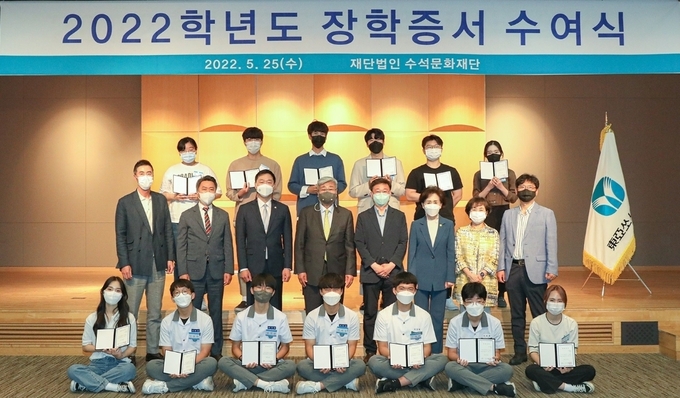수석문화재단은 25일 오후 3시 서울 동대문구 용두동 동아쏘시오그룹 본사 대강당에서 ‘2022학년도 장학증서 수여식’을 개최했다고 밝혔다.