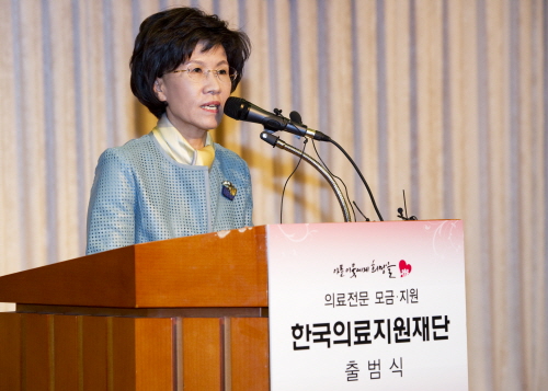 진수희 보건복지부 장관은 12일 오전 은행회관 국제회의실에서 한국의료지원재단 출범식에 참석
