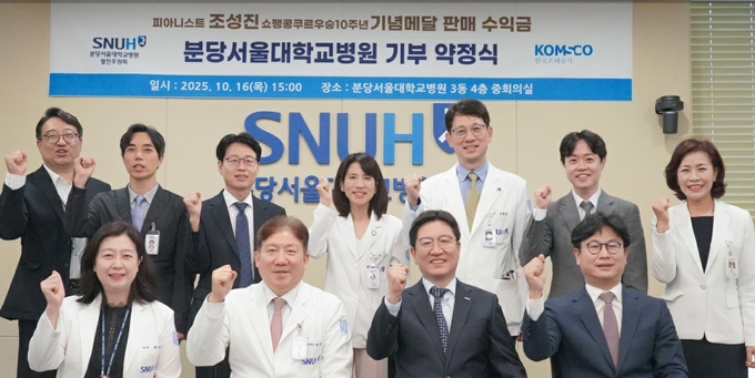 분당서울대병원(원장 송정한)은 지난 16일 병원 중회의실에서 열린 협약식을 통해 한국조폐공사(사장 성창훈)로부터 ‘피아니스트 조성진 쇼팽 콩쿠르 우승 10주년 기념메달’ 판매 수익금을 기부받기로 약정했다.