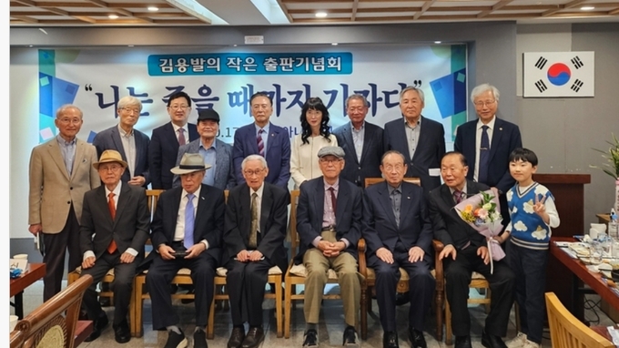 <앞줄 왼쪽으로부터>윤덕순 전 한국은행 인재개발원장, 유상옥 코리아나화장품 회장, 조완규 전 서울대총장, 김용원 전 대우전자 회장, 지성한 한성실업 회장, 저자 김용발 메디팜헬스뉴스 회장겸 발행인, 저자의 손자 김선민군, <뒷줄 왼쪽으로부터>김환수 주한 미대사관 상임고문, 강한필 전 불교방송 사장, 서영득 전 공군 법무감, 김상화 산악인, 김용균 법무법인 정론 대표변호사, 이성애 목사, 정종민 무림홀딩수 회장, 전중신 전 동원사업 전무, 유자효 전 SBS보도국장.본지 메디팜헬스뉴스의 발행인 김용발회장의 저서 ‘나는 죽을 때까지 기자다’의 출판기념식이 지난 17일 코리아나 호텔 3층에서 황교안 전 총리를 비롯 많은 하객들이 참석한 가운데 성대히 치러졌다.