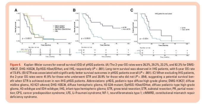 예후 분석 결과, 영아형 대뇌반구 교종은 다른 아형에 비해 통계적으로 유의하게 생존율이 높았다(p<0.0001). 2년 생존율은 92.3%, 5년 생존율은 73.8%였으며, 수술 전절제(GTR)를 시행한 환자군이 비전절제(non-GTR) 환자군보다 생존율이 유의하게 더 높았다(p<0.0001). 연구팀은 영아기 발병 특성과 비교적 좋은 예후를 고려할 때, 불필요한 방사선 치료는 장기적인 부작용을 초래할 수 있어 환자 상태와 수술 범위에 따라 치료 강도를 조절하는 맞춤형 접근이 필요하다고 설명했다.