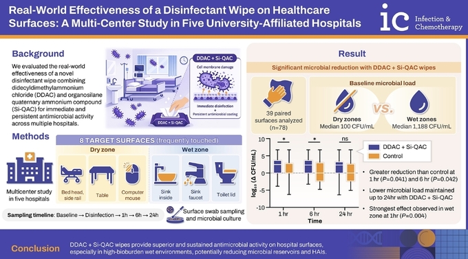 이번 논문의 1저자인 노덕희 교수(가톨릭대학교 서울성모병원 감염내과)는 “실제 대학병원 내 다양한 접촉 표면에서 제품의 살균 지속력을 직접 검증했다는 점에서 의미가 크다”며 “특히 감염 관리가 까다로운 구역에서도 1회 사용으로 탁월한 성능을 보인 점이 인상적”이라고 평가했다.