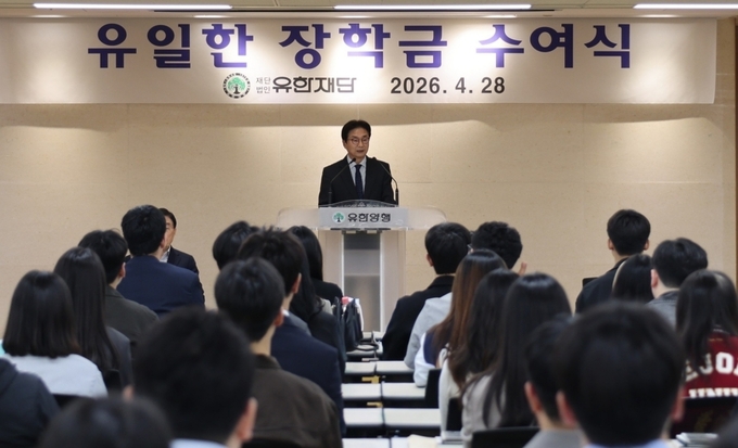 유한재단(이사장 원희목)은 4월 28일 서울 동작구 유한양행 본사 4층 연수실에서 ‘2026년 제3회 유일한 장학금 수여식’을 개최했다.