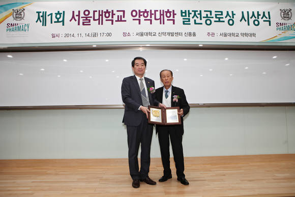 국민보건과 인류의 건강을 위하여 노력해온 서울대학교 약학대학이 2014년 ‘서울대학교 약학대학 발전공로상’ 시상식을 11월 14일(금) 오후 5시 서울대학교 신약개발센터 1층 신풍홀에서 개최하였다.