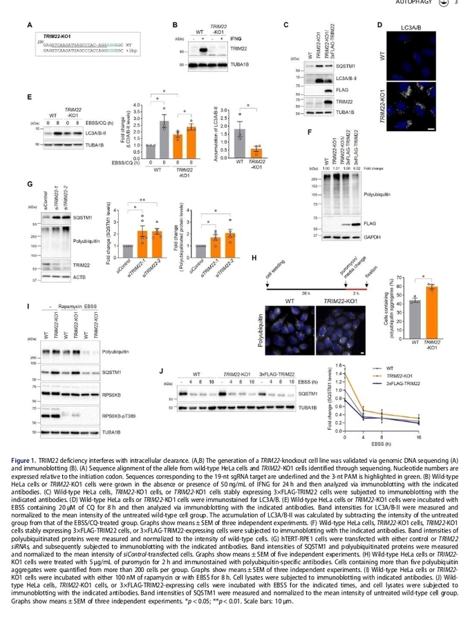 이번 연구는 12월 세포생물학 분야 저명 국제 학술지 Autophagy(IF 13.3)에 ‘TRIM22 facilitates autophagosome-lysosome fusion by mediating the association of GABARAPs and PLEKHM1’이란 제목으로 게재됐다.
