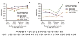 비음주자가 술을 마시기 시작하거나 기존 음주자가 섭취량을 늘리는 등의 음주 행태 변화가 위암 발생 위험에 큰 영향을 미친다는 연구결과가 나왔다. 절대적 음주량뿐만 아니라 음주량 변화 역시 주의깊게 관찰·관리할 필요가 있다는 점에서 위암 예방에 중요한 메시지가 될 것으로 전망된다. 분당서울대병원 소화기내과 김나영 교수 연구팀(소화기내과 최용훈 교수·국립암센터 암진료향상연구과 장지은 박사)은 국민건강보험공단 건강검진 자료를 토대로 40세 이상 성인 31만192명을 하루 알코올 섭취량에 따라 △경도(남성 15g·여성 7.5g 미만) △중등도(남성 15~29.9g·여성 7.5~14.9g) △고용량(남성 30g·여성 15g 이상)으로 분류하고, 평균 약 12년간 추적 관찰한 결과 이같이 밝혔다. 연구팀에 따르면 현재 알코올 섭취량과 무관하게 음주량 증가는 명백한 위암 위험 요인으로 작용했으며, 금주 혹은 절주는 발병 위험을 낮추는 효과가 있었다. 예를 들어, 비음주자가 새롭게 음주를 시작할 시 가벼운 수준으로 즐기더라도 위암 위험이 14% 가량 증가(상대위험도 1.14)했으며, 반대로 중등도의 음주자는 경도 수준으로 줄일 경우 발병 위험이 20% 가량 감소(상대위험도