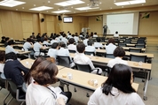 전남대학교병원(병원장 윤택림)이 14일 병원 6동 백년홀에서 광주하계유니버시아드 조직위원회 김윤석 사무총장의 명사특강을 개최했다. 이날 강연은 윤택림 병원장을 비롯해 병원 직원과 환자 등 200여명이 참석한 가운데 1시간 동안 진행됐다. ‘세상을 바꾸는 힘, 글로벌 소통’을 주제로 한 강연에서 김윤석 사무총장은 지난 2015년 광주하계U대회를 통해 국제적으로 인정 받았던 광주가 이제 정감 넘치는 따뜻한 세계적 도시로 새롭게 나아갈 방향에 대해 설명했다. 이날 김윤석 사무총장은 “교류와 개방전략을 통해 광주의 부정적 이미지를 최소화하고, 긍정적인 면을 부각시키는 노력이 필요하다” 면서 “이를 위해선 두뇌이동의 시대 대비, 광주라는 박스에서 탈출, 광주정신의 가치에 과감한 투자 등을 실현시켜야 한다”고 강조했다. 이날 참석자들은 깔끔한 논리와 다양한 에피소드 소개로 시종일관 흥미롭게 진행되는 강연에 몰입했으며, 강연 도중 공감되는 얘기가 나올땐 박수갈채를 보내기도 했다. 전남 해남 출신인 김윤석 사무총장은 전 대한체육회 국제위원 및 기획예산처 기획관리관실 예산업무담당관, 광주광역시경제부시장 등을 역임했으며, 공직자로서 맡은 바 업무에 충실해 국익에 기여한 공로로