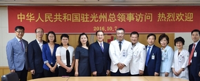 손현우 중국 주(駐)광주총영사가 지난 7일 화순전남대학교병원(원장 김형준)을 방문, 한-중 양국간 의료분야 교류협력을 적극 돕겠다고 약속했다. 이번 방문길에는 지난 5월 부임한 손총영사를 포함, 부인인 장동 여사, 진걸 부총영사, 경제교류 업무를 담당하고 있는 하조영 부영사, 왕사류 영사주재관 등이 동행했다. 손총영사는 베이징을 비롯, 서울·평양 등지에서 수년간 근무한 중국 외교부의 아시아 전문가다. 김형준 원장은 직접 병원 곳곳을 안내하며, 허심탄회하게 의견을 나눴다. 화순전남대병원은 지난 2007년 중국의 광주영사사무소 개설과 2009년 광주총영사관 개관 이후 줄곧 ‘중국총영사관 전남권 지정병원’으로서 우호관계를 지속해왔다. 총영사 일행은 병원내 주요시설을 둘러보며 화순전남대병원의 암특화 의료시스템에 깊은 관심을 보였다. 해외환자 치료현황과 비용 등에 관해 많은 질문을 던지며, 세심하게 살펴봤다. 무등산 국립공원 인근에 자리잡은 청정지대 입지여건과 병원내 ‘치유의 숲’ 등 환자를 배려한 시설에 대해 찬사를 보내기도 했다. 지역내 중국유학생 등을 병원으로 초청해 `메디컬 캠프‘를 개최, 유학생활을 위한 건강정보를 제공해주고 있는 점에 대해 감사의