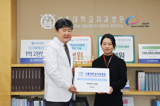 지난 11월 18일(화), 아이미즈치과의원 박소라 원장이 장애인구강진료 향상을 위해 써 달라며 서울대학교치과병원(병원장 이용무) 부설 장애인치과병원 중앙장애인구강진료센터에 1천만 원을 기부했다. 이번 기부는 2025년 서울대학교치과병원 발전후원회 ‘서포터즈’ 프로그램의 첫 번째 공식 나눔 행사로 진행된 기부금 전달식으로, 박소라 원장은 발전후원회 ‘1호 서포터즈’로 참여해 그 의미를 더했다. 이날 병원에서 열린 기부금 전달식에는 이용무 병원장과 조정환 대외협력실장이 참석해 감사의 뜻을 전했으며, 기부 취지에 맞는 지원 방향에 대해 논의하는 시간을 가졌다. 기부금은 중앙장애인구강진료센터에서 중위소득 80% 이하 저소득층 장애인 치과치료비 지원에 우선 사용될 예정으로, 치료비 부담으로 적절한 치료를 받기 어려운 중증장애인 환자들에게 실질적 도움이 될 전망이다. 박소라 원장은 “치과 진료가 가장 필요하지만 가장 멀게 느껴지는 분들에게 작은 보탬이 되고 싶었다. 이번 기부가 장애인 환자분들이 치료를 포기하지 않도록 힘이 되길 바라며, 앞으로도 지역사회와 함께하는 의료기관으로서 역할을 이어가겠다.”라고 전했다. 이용무 원장은 “발전후원회 서포터즈 1호로서 의미 있는