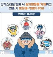 질병관리청(청장 임승관)은 올 겨울 한파로 인한 건강피해를 최소화하기 위해 2025년 12월 1일부터 2026년 2월 28일까지 「한랭질환응급실감시체계」를 운영한다. 이를 통해 겨울철 한파로 인한 건강피해 발생을 모니터링하여 발생동향을 파악하고 주요 발생특성 정보를 제공함으로써 대국민 건강 인식 강화 및 예방활동 유도하고자 한다. 2025~2026 절기 「한랭질환 응급실감시체계」는 전국 약 500개 응급실 운영 의료기관이 자발적으로 참여하고 관할 보건소 및 지자체와 협력하여 한파로 인한 건강피해 발생을 감시한다. 신고된 한랭질환 발생현황은 질병관리청 누리집을 통해 매일 제공될 예정이다. 지난 2024~2025절기는 한랭질환 신고 건수가 총 334명으로, 한랭질환자의 주 증상은 저체온증(80.2%, 268명)으로 나타났으며, 특히, 80세 이상의 고령층에서 30.8%(103명)의 환자 발생하였다. 발생 장소로는 실외 발생(74.0%, 247명)이 실내 발생(26.0%, 87명)보다 약 2.9배 많이 발생한 것으로 나타났다. 따라서 고령층은 일반 성인보다 체온 유지 능력이 떨어져 한파 시 실외활동을 자제하고 보온에 각별히 유의해야 한다. 외출시에는 따뜻한 옷을