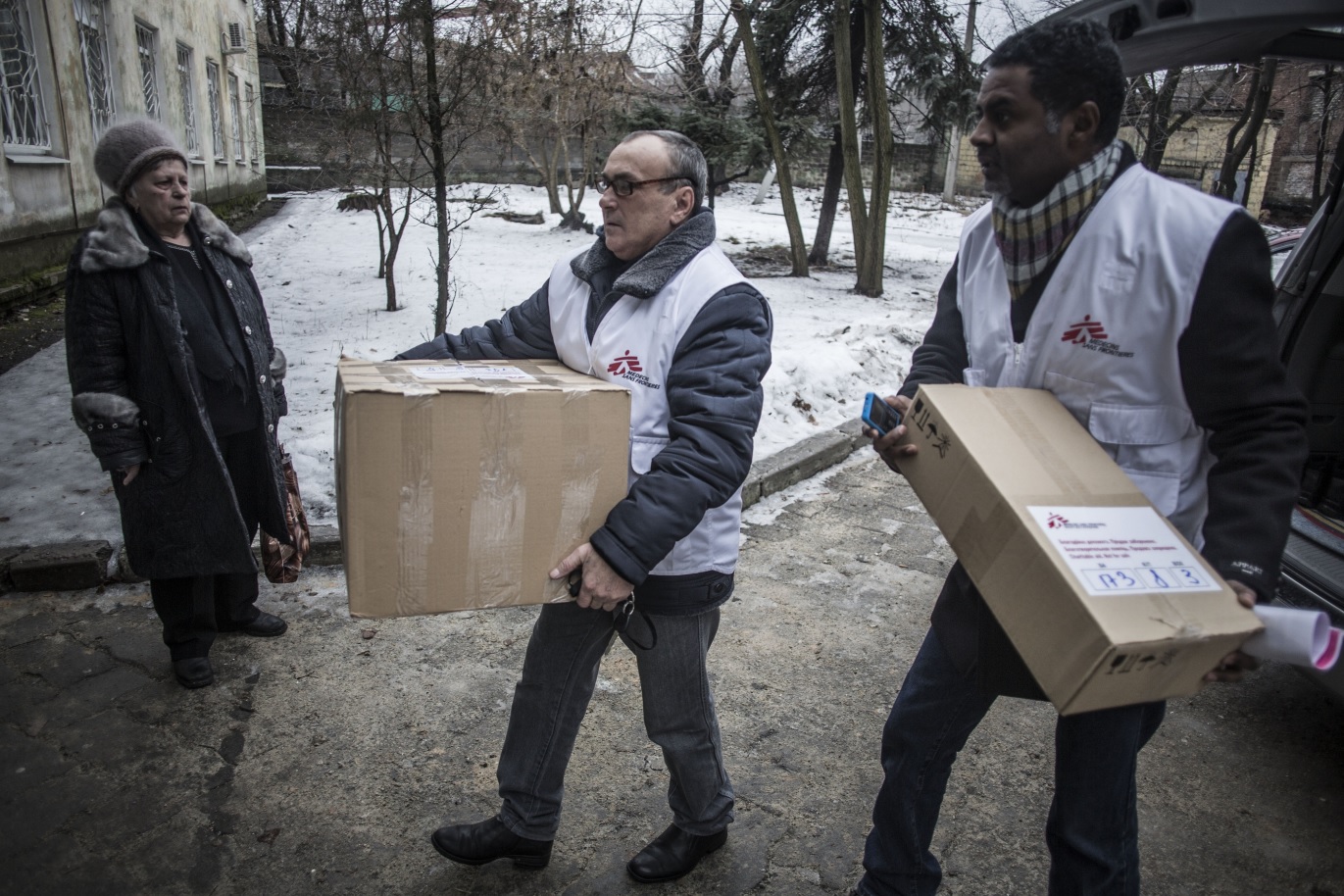 2주 전부터 교전이 격화되면서, 국경없는의사회는 교전선 양쪽에서 가장 큰 피해를 입은 지역 의료진을 돕는 데 중점을 두고 활동해 왔다. 현재 국경없는의사회 소속 국제 활동가 30명, 현지 직원 100명이 우크라이나에서 활동 중이다. 2014년 5월부터 국경없는의사회는 도네츠크, 루한스크, 드네프로페트로프스크(Dnepropetrovsk)의 교전선 양쪽에서 의료시설 약 100곳에 의료 물품을 지원하고 있다. 이는 부상자 1만 5000명, 임산부 1600명, 만성질환 환자 4000명 이상을 충분히 치료할 수 있는 양이다. 기초 의료 지원을 받기 어려워진 주민들을 위해, 현재 국경없는의사회는 분쟁 피해 지역의 여러 보건소와 산부인과를 지원하고 있다. 국경없는의사회 심리학자들은 개인상담과 집단상담을 통해 분쟁 피해자들에게 심리치료 지원도 하고 있다. 또한 이들은 분쟁 피해 지역에서 활동하는 현지 심리학자, 사회복지사, 의료진을 위한 교육 프로그램도 운영하고 있다. 그 밖에 국경없는의사회는 2011년부터 도네츠크 지역 교도소에서 약제내성 결핵 치료 프로그램을 꾸준히 진행해 오고 있다.
