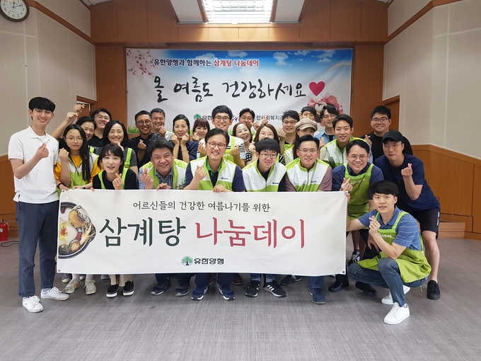 ㈜유한양행(사장 이정희)은 지난 13일 초복을 맞아 소외된 어르신들을 위한 ‘삼계탕 나눔데이’ 봉사활동을 펼쳤다.
