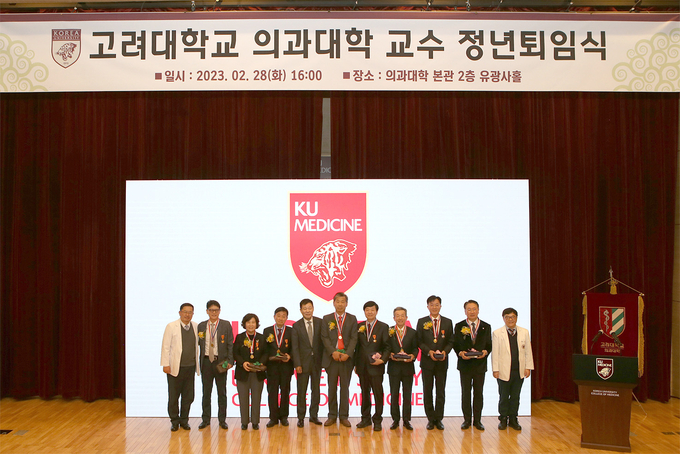 고려대학교 의과대학(학장 윤영욱)이 2월 28일(화) 오후 4시 의과대학 본관 유광사홀에서 안과학교실 김효명, 영상의학교실 강은영, 이비인후과학교실 이상학, 신경외과학교실 박윤관, 소아청소년과학교실 유기환, 예방의학교실 이은일, 재활의학교실 강윤규, 내과학교실(순환기) 김영훈 이상 8명 교원의 정년퇴임식을 가졌다고 2일 밝혔다.
