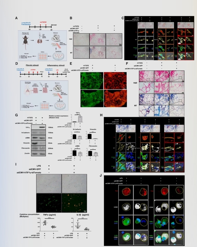 연구팀은 항섬유화 유전자 ‘TIF1γ’를 잠재적 치료제로 주목했다. 이 유전자는 연구팀의 기존 연구를 통해 간·콩팥에서 섬유화 억제 효과가 확인된 바 있으며, 실제 폐 섬유증 환자의 폐조직을 분석하자 TIF1γ 발현이 건강한 사람보다 현저히 낮아져 있었다.