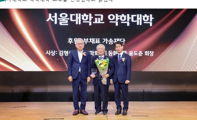 시상식은 10월 23일 서울 강서구 코엑스마곡 컨벤션센터에서 열린 '2025 대한약학회 추계국제학술대회' 만찬행사에서 진행됐다.