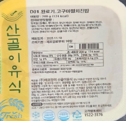 식품의약품안전처(처장 오유경)는 식품제조·가공업체인 ‘(주)에코맘의 산골이유식(경남 하동군 소재)’이 제조·판매한 ‘고구마멸치진밥(식품유형 : 영·유아용 이유식)’에서 세균수가 기준치 보다 초과 검출되어 해당 제품을 판매 중단하고 회수 조치한다고 밝혔다.