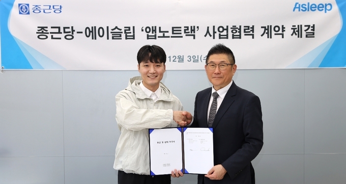 종근당(대표 김영주)은 서울 충정로 본사에서 슬립테크 기업 에이슬립(대표 이동헌)과 수면무호흡증 디지털 진단보조기기 ‘앱노트랙(Apnotrack)’의 국내 공동판매 계약을 체결했다고 4일 밝혔다.