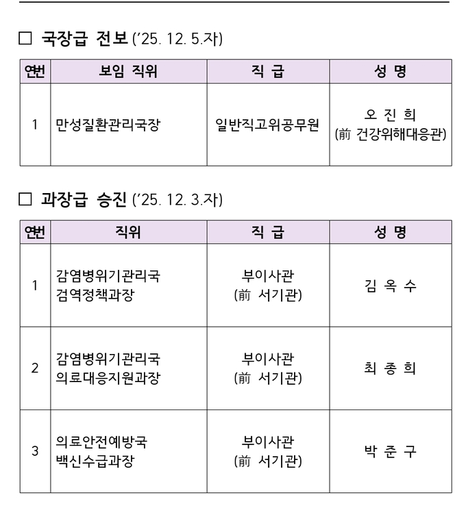 질병관리청,만성질환관리국장에 오 진 희 前 건강위해대응관 전보 발령