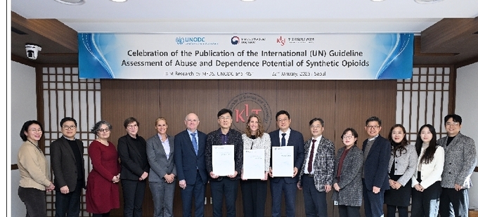 식품의약품안전처가 유엔마약범죄사무소(UNODC), 한국과학기술연구원(KIST)과 함께 신종 마약류의 지정·관리를 위한 세계 최초의 마약류 의존성 평가 국제(UN) 가이드라인 제정을 기념하는 행사를 22일 개최했다. 이번 가이드라인은 국제적으로 기준이 부재했던 마약류 의존성 평가 분야에서 각국이 공통으로 활용할 수 있는 첫 국제 기준으로, 신종 마약류에 대한 보다 신속하고 체계적인 대응을 가능하게 할 것으로 기대된다.