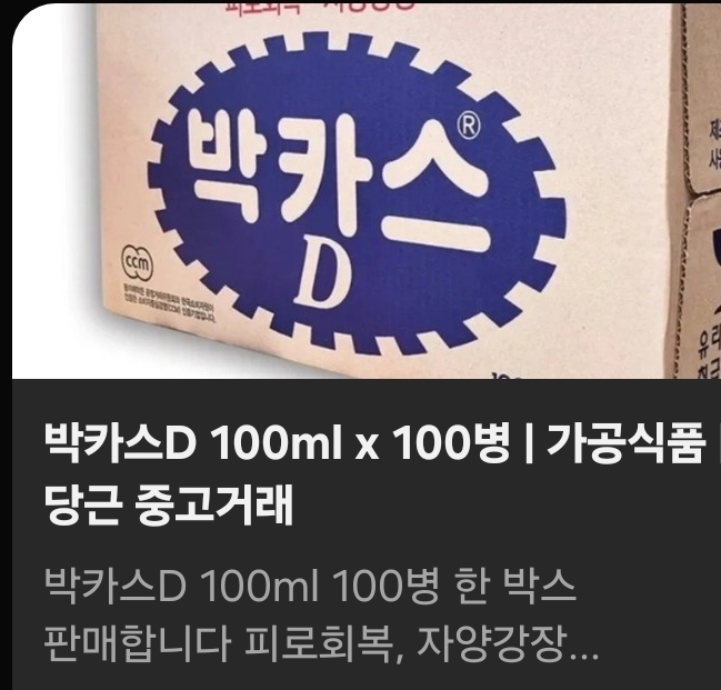 최근 중고거래 사이트 ‘당근’에는 일반의약품인 동아제약 박카스 D를 박스 단위로 판매한다는 게시글이 올라와 논란이 일고 있다. 박카스 D는 약국에서만 판매할 수 있는 일반의약품으로, 편의점 등에서 판매되는 박카스 F와는 법적 지위가 다르다.판매자는 박카스 D를 일반의약품이 아닌 가공식품으로 올렸다.