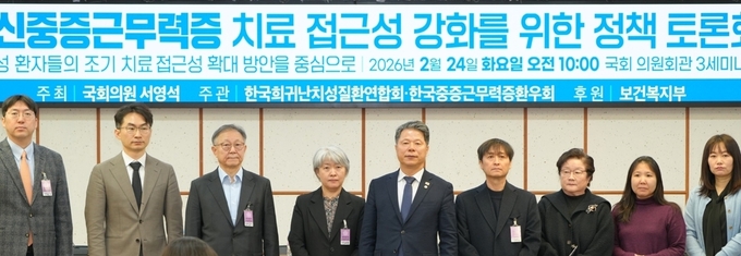 서영석 더불어민주당 의원(경기 부천시갑, 국회 보건복지위원회)이 주최하고 한국희귀·난치성질환연합회와 한국중증근무력증환우회가 주관한 ‘전신중증근무력증(MG) 치료 접근성 강화를 위한 정책 토론회’가 24일 오전 국회의원회관 제3세미나실에서 열렸다.