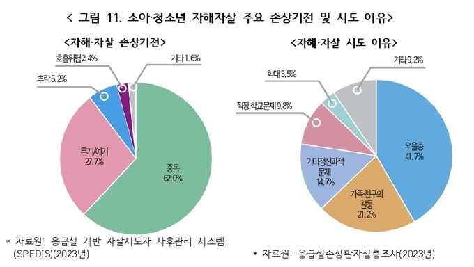 또한 2014년 대비 2023년 자해·자살 시도는 553.1% 급증했다. 자해 시도 원인은 우울과 가족·친구 간 갈등이 주요 요인으로 분석됐다.