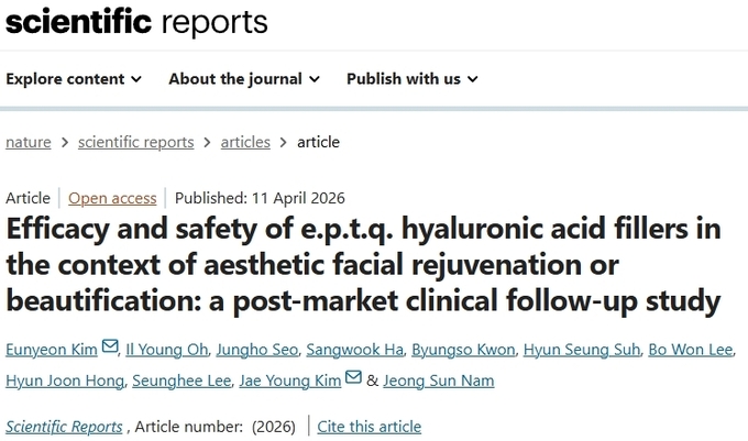 이번 논문 ‘Efficacy and safety of e.p.t.q. hyaluronic acid fillers in the context of aesthetic facial rejuvenation or beautification: a post-market clinical follow-up study’는 2022년 9월부터 2023년 5월까지 국내 8개 기관에서 9명의 연구진이 참여한 관찰 연구로 진행됐다.
