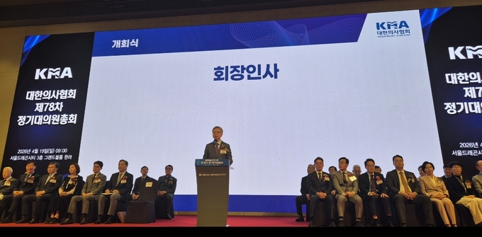 대한의사협회 제78차 정기대의원총회가 19일 서울 용산 드래곤시티호텔에서 개최됐다. 이날 총회는 김교웅 대의원회 의장의 개회사와 김택우 회장의 인사말, 이재명 대통령의 축사 등에 이어 의료계 주요 현안과 향후 대응 방향이 논의됐다.
