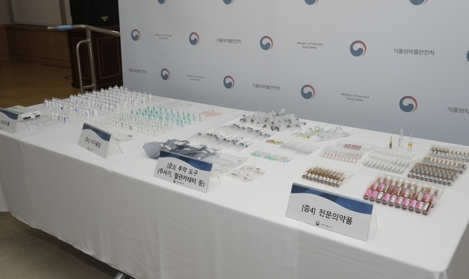 현장에서 확인된 사용 물품은 프로포폴 96개, 미다졸람 61개와 주사기 132개에 달했으며, 이와 함께 스테로이드제, 소염진통제, 항생제, 항구토제, 항히스타민제 등 처방이 필요한 주사제 전문의약품 138개도 불법 보관하고 있던 것으로 조사됐다.