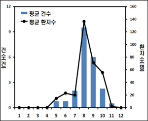 최근 4년간 여름철(6~9월)에 전체 식중독 발생 건수(604건)의 44%, 환자의 48%가 발생하였는데, 특히 수산물에 의한 장염비브리오 식중독(73건)이 7∼9월에 집중 발생했다.