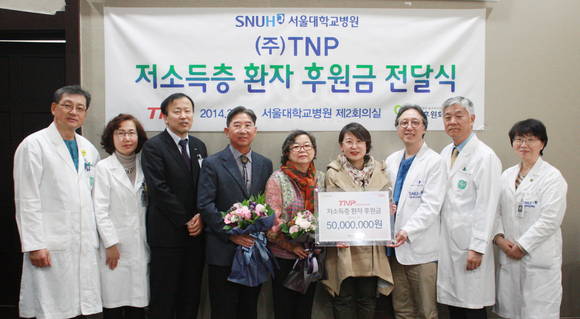 ㈜TNP가 3월 19일(수) 서울대학교병원 함춘후원회에 저소득층 환자지원금 5천만원을 전달했다.