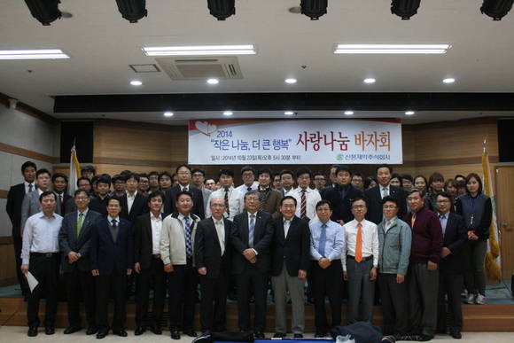 신풍제약(주) (대표 유제만)은 2014년 10월 23일(목) 강남구 역삼동 본사강당에서 임직원들이 참석한 가운데 2014 ‘작은 나눔, 더 큰 행복’이라는 사랑 나눔 바자회(사진)를 개최하였다.