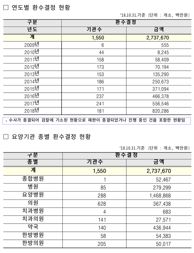 이들 요양기관이 불법개설기관으로 기소될 경우, 공단은 요양기관 개설이후 지급한 요양급여비용(약 5,812억 원) 전부를 환수하게 된다.