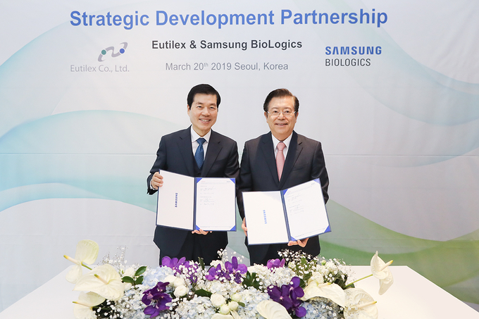 삼성바이오로직스(대표이사: 김태한)와 유틸렉스(대표이사: 권병세)가 20일(수) 서울 여의도에 위치한 콘래드호텔에서 항암면역치료제에 대한 위탁개발(CDO: Contract Development Organization)계약을 체결했다.