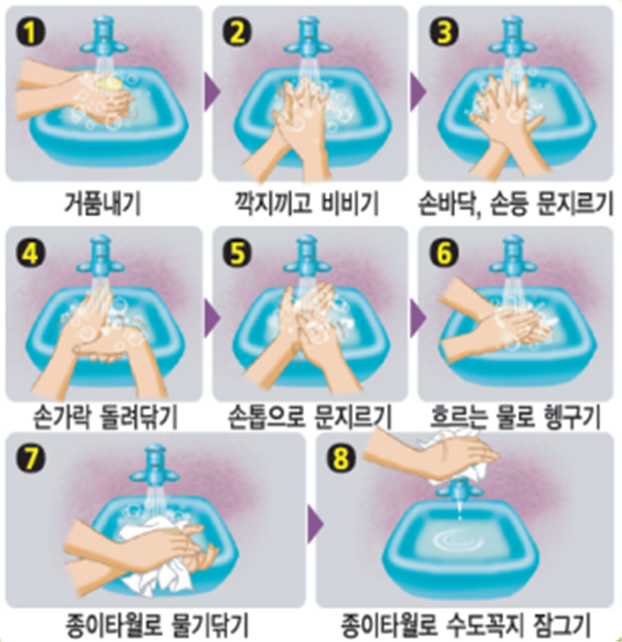 봄철 큰 일교차로 인해 식중독 발생 우려가 높아지고 있다.....식약처는 급식소 등 식품취급시설이 위생관리에 주의를 더욱 기울여 줄 것과 종사자뿐만 아니라 소비자들도 올바른 손 씻기 등 개인 위생관리를 철저히 하여 줄 것을 당부했다. 올바른 손 씻기 실천요령에 대해 그림을 통해 알아본다.