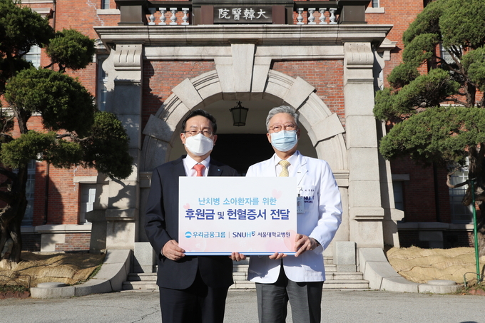 우리금융그룹은 사회복지공동모금회로 기부한 2억 원과 헌혈증서 500매를 서울대병원에 기부했다. 해당 기부금과 헌혈증은 난치병 소아환아 등 의료사각지대에 놓인 환자들을 위해 사용된다. 서울대병원은 단순 치료비 지원을 넘어 실질적으로 취약계층을 돕는 방안을 고민할 예정이다.