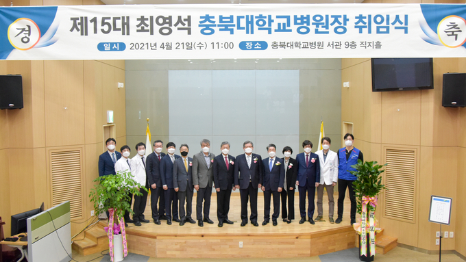 충북대학교병원은 21일 오전 11시 본원 서관 9층 직지홀에서 ‘제15대 최영석 충북대학교병원장 취임식’을 진행했다.