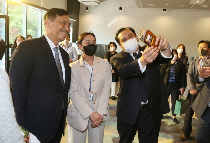 대웅제약(대표 전승호)은 25일 루훗 빈사르 판자이탄 인도네시아 해양·투자조정부 장관과 부디 구나디 사디킨 보건부 장관이 대웅제약 용인 R&D센터를 방문했다고 26일 밝혔다. 대웅제약 측에서는 전승호 대표와 박현진 글로벌본부장 등이 방문단을 맞이했다.
