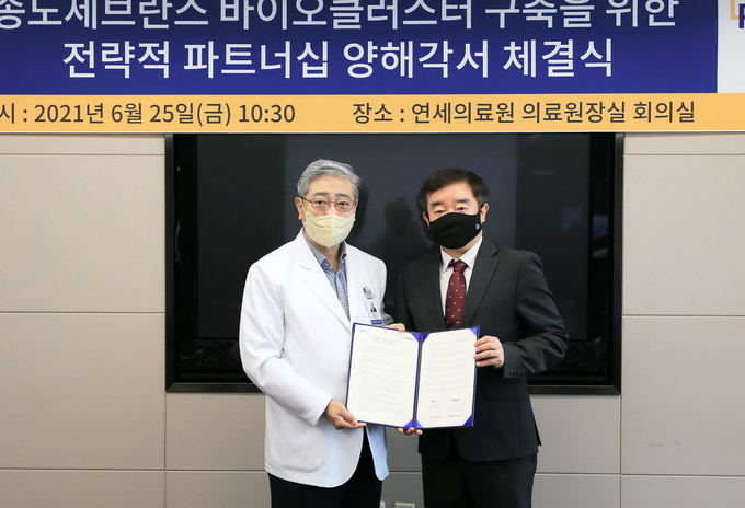 연세의료원과 플랫바이오는 협약에 따라 송도세브란스병원을 중심으로 한 바이오 클러스터 조성과 기업 지원 및 융합연구 수행 체계를 마련한다.