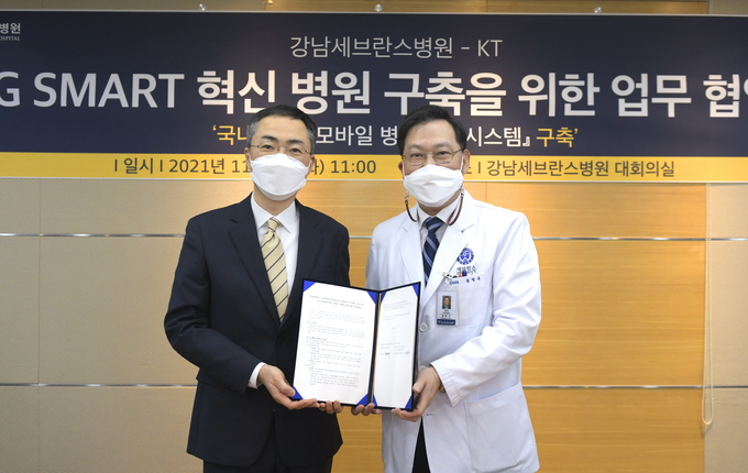 연세대 강남세브란스병원(병원장 송영구)이 KT와 ‘5G 스마트(SMART) 혁신병원 구축을 위한 업무협약(MOU)’을 체결했다. 포스트 코로나 시대에 대비해 디지털 전환을 통한 5G 스마트 혁신병원을 선도한다는 계획이다.