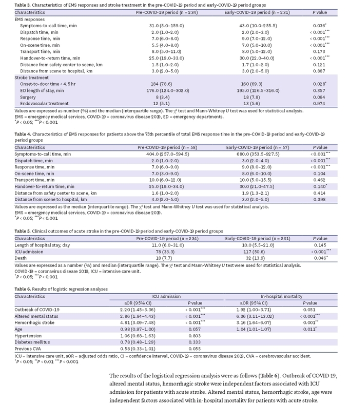 김대희 인천성모병원 응급의학과 교수팀은 코로나19의 갑작스러운 유행이 급성 뇌졸중 환자와 관련해 응급의료체계에 미친 영향과 환자의 예후를 확인했다. 김대희 교수팀은 서울 소재 5개 소방서 산하 안전센터 25곳에 접수된 응급의료서비스(EMS·Emergency Medical Services) 기록을 서울 지역 코로나19 유행 이전(2019년 2월 1일~4월 30일) 그룹과 유행 초기(2020년 2월 1일~4월 30일) 그룹으로 나눠 분석했다.