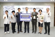 전북대학교병원(병원장 양종철)은 제2·3대 병원장을 역임한 변지수 전 병원장이 병원 발전을 위해 발전기금 3천만 원을 기탁했다고 21일 밝혔다. 전달식은 본관 3층 온고을홀에서 양종철 병원장, 이상록 대외협력홍보실장, 김소은 대외협력홍보부실장 등이 참석한 가운데 진행됐으며, 고령인 변지수 전 원장을 대신해 사위인 양진양 광주W여성병원 원장과 자제 변상현이 참석해 기금을 전달했다. 변지수 전 원장은 전북대병원 제2·3대 병원장을 역임하며 병원의 기틀을 다지고 성장 기반을 구축하는 데 중추적인 역할을 수행했다. 재임 기간 동안 진료체계 정비와 의료서비스 향상에 힘쓰며 지역 거점병원으로서의 위상을 강화하는 데 기여했으며, 이번 기부를 통해 다시 한 번 병원과 지역사회를 향한 깊은 애정을 전했다.